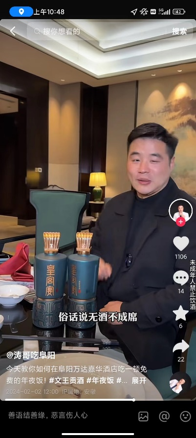 在线下,涛哥吃阜阳作为文王贡酒龙腾盛宴年夜饭体验官亲临现场,为大家揭开价值五千元年夜饭的神秘面纱,探店视频一经发布,吸引大量用户火速围观,将活动热度推向高潮。