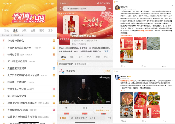 回顾此次文王贡酒龙年营销,品牌以春节刚需场景“年夜饭”为核心,展开颇具话题及传播力的“龙腾盛宴 朕来买单”营销活动,双线联动,引爆全网热议。