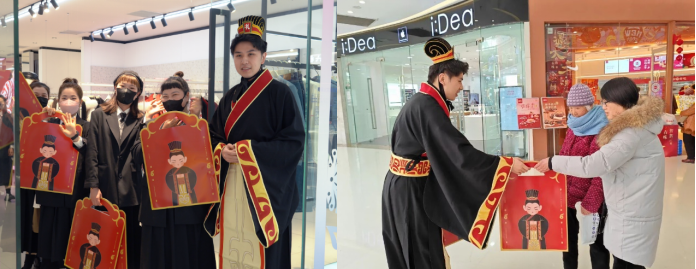更有线下文王贡酒180男团变身小千岁,在阜阳首次亮相,为阜阳人免费送上10000份“小千岁“限定春联。